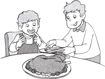 Mike usually eats with a knife and fork. He uses (使用) the knife to cut food and the fork to eat. He holds the knife in his right hand and the fork in his left hand. He never plays with the knife or the fork at the table. He never points at others with them either. When he cuts food with the knife, he tries not to make noise.