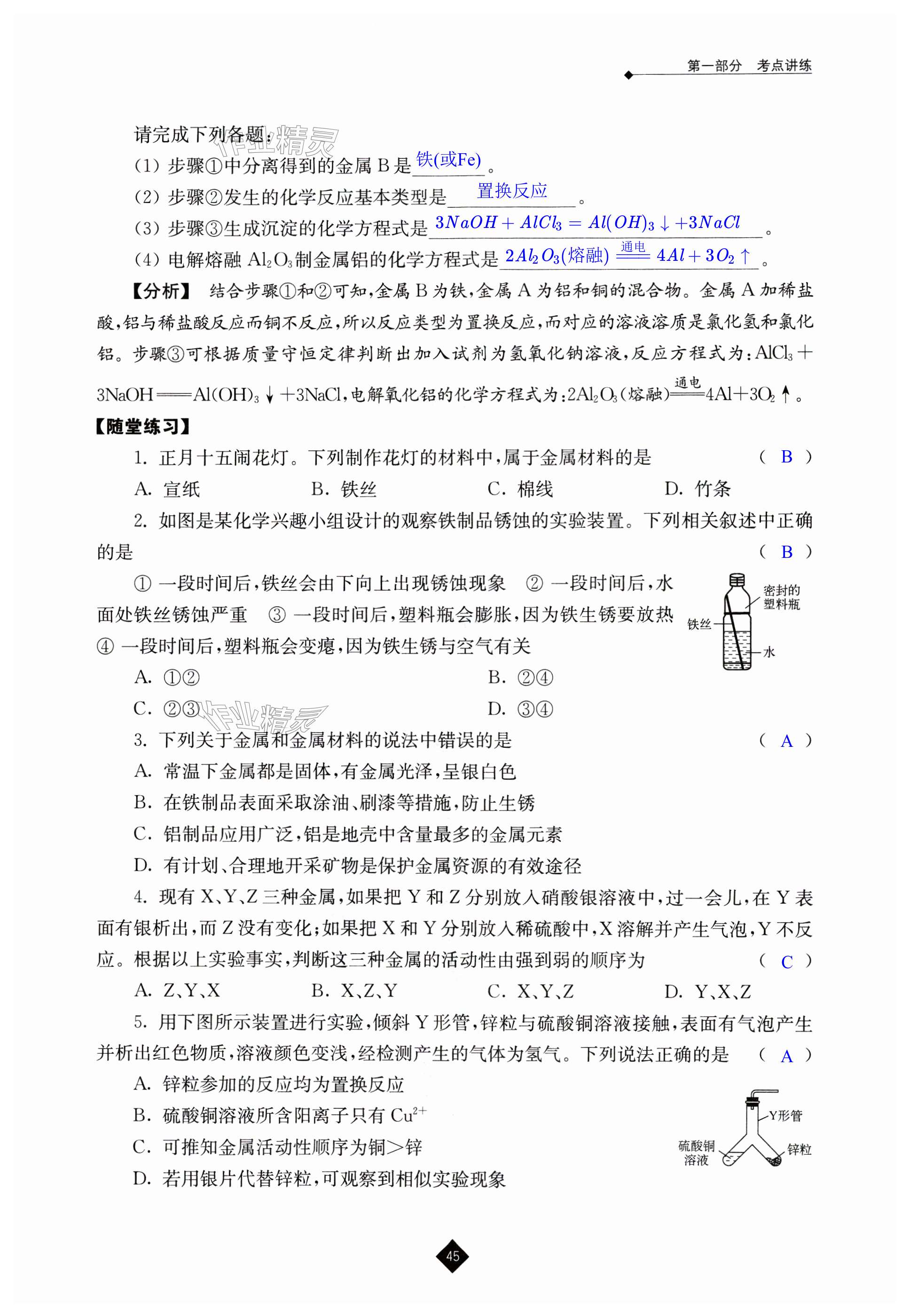 注:目前有些书本章节名称可能整理的还不是很完善,但都是按照顺序排列的,请同学们按照顺序仔细查找。练习册 2025年中考复习指南江苏人民出版社化学 答案主要是用来给同学们做完题方便对答案用的,请勿直接抄袭。