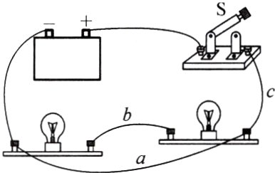 (3)改变a、b、c三根导线中一根的接法,使电路成为并联电路(先在原导线上打“×”后再更改接法)。