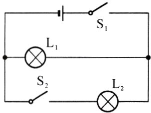3. 某同学按图接好电路,闭合开关S₁、S₂后发现,灯L₁亮,灯L₂却不亮。下列情况中不可能的是 ( )