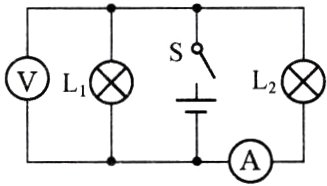 3. 如图所示,电源电压不变,闭合开关S,灯$L_1$和$L_2$均发光。一段时间后,一盏灯突然熄灭,而电流表和电压表的示数都不变,出现这一现象的原因可能是 ( )