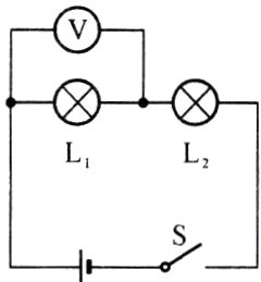 1. 如图所示,闭合开关S后,灯$L_1$和$L_2$都不亮,电压表有示数。则故障原因可能是 ( )
