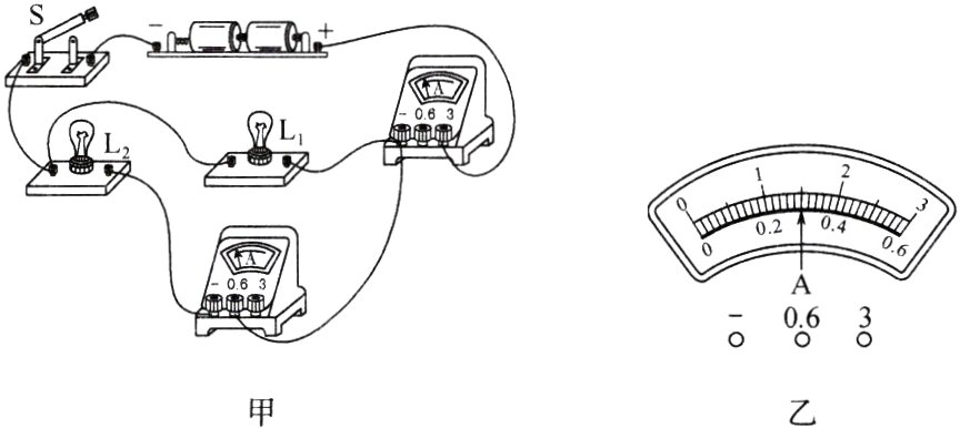 2. 如图甲所示的实物电路中,当开关闭合时,两灯泡均发光,且两个完全相同的电流表指针偏转均如图乙所示。则下列判断正确的是 ( )