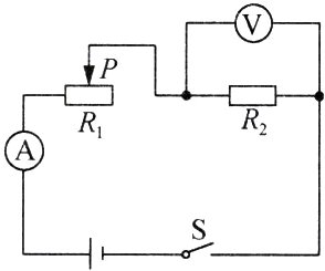 9. 如图所示,电源电压为3V,闭合开关S后,电流表示数为0.4A,电压表示数为1V,则$R_{2}$的阻值是________Ω. 将滑动变阻器$R_{1}$的滑片向右移动,电流表示数变________,电压表示数变________.