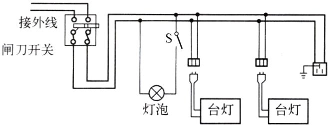 (3)开关中的两个线头相碰;(4)户外输电线绝缘皮破损.