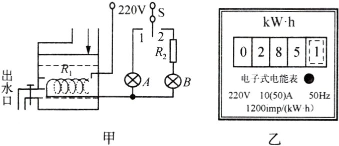 (3)乐乐看到自家电能表如图乙所示(1200imp/kW·h是脉冲系数,表示消耗1kW·h电能,脉冲信号灯闪变1200次). 乐乐关闭家中其他电器,单独让电热水器工作,发现2min电能表信号灯闪变42次. 求热水器的实际功率.