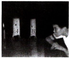 6. 如图所示,小明想通过A、B两张纸片上的小孔看见烛焰,他应将烛焰、两个小孔和人眼调到______上,这样操作的依据是______。操作过程中他还在B纸片上看到了一个烛焰的像,这个像是______(选填“正立”或“倒立”)的。