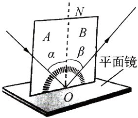 (必须用尺作图)在图中画出反射光线OB的入射光线,并标出入射角的大小。