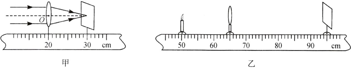 2. 用如图甲所示的装置测出凸透镜的焦距,并“探究凸透镜成像规律”,当蜡烛、透镜、光屏位置如图乙时,在光屏上可成清晰的像. 下列说法正确的是 ( )