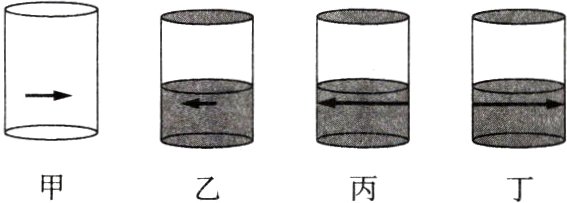1. 小明同学找来一个薄壁圆柱形玻璃杯,并将画有箭头的白纸靠在玻璃杯后,观察结果如图甲所示. 向杯中加水,使得水面高过箭头位置,透过玻璃杯观察纸上的“箭头”;将白纸逐渐远离杯子的过程中,依次观察到情景是 ( )