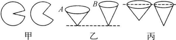 (1)如图甲所示是两个等大的圆纸片,裁去一个扇形,做成图乙所示的A、B两个锥角不等的纸锥,将两个锥角不等的纸锥从同一高度同时释放时,应该选择图________(选填“乙”或“丙”)所示的位置。