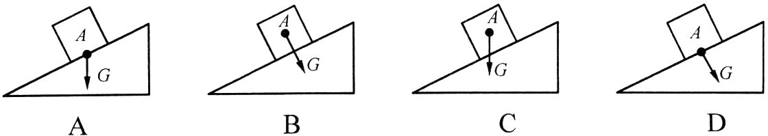 2. 下列物体A所受重力的示意图中正确的是 ( )
