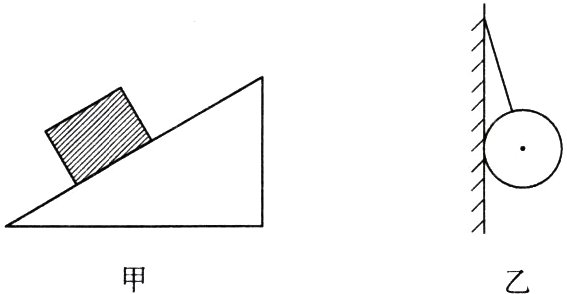 (2)如图乙所示,一个重是8 N的小球,用绳子拉着挂在光滑的墙上. 已知绳子的拉力是10 N,墙对小球的水平压力是6 N. 用力的示意图画出小球受到的力.