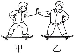 4. 如图所示,甲、乙两人都站在滑板上,当甲用力推乙时,乙在往后退,甲也在往后退。这一现象说明:(1) ____________________;(2) ____________________。
