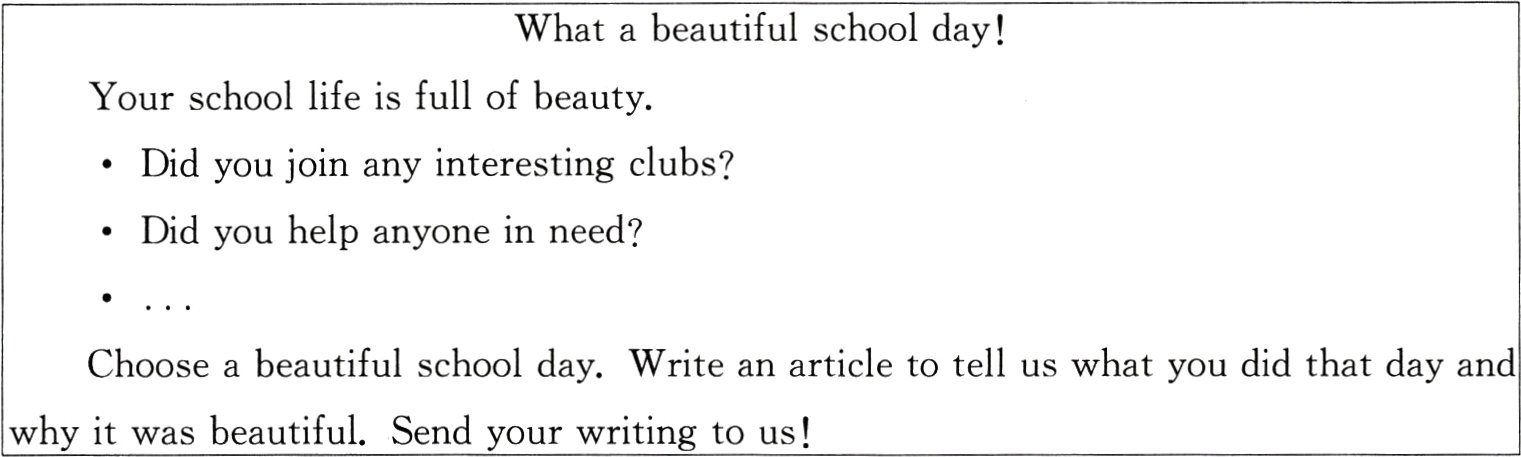 71. 学校英语角正在举办征文活动,请根据征文要求,用英语写一篇短文进行投稿。