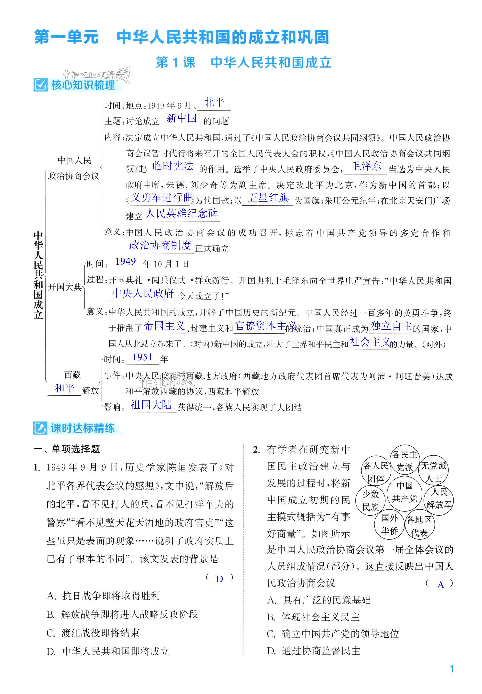 注:目前有些书本章节名称可能整理的还不是很完善,但都是按照顺序排列的,请同学们按照顺序仔细查找。练习册 2025年通成学典课时作业本八年级历史下册人教版苏州专版 答案主要是用来给同学们做完题方便对答案用的,请勿直接抄袭。
