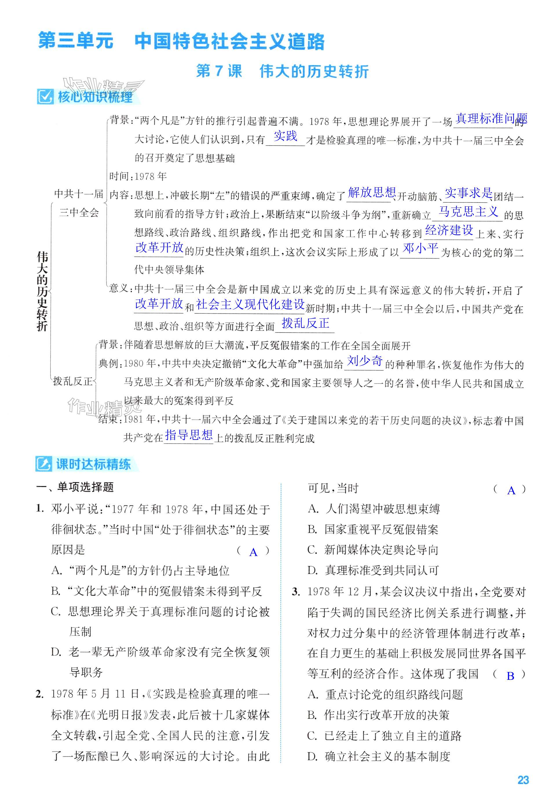 注:目前有些书本章节名称可能整理的还不是很完善,但都是按照顺序排列的,请同学们按照顺序仔细查找。练习册 2025年通成学典课时作业本八年级历史下册人教版苏州专版 答案主要是用来给同学们做完题方便对答案用的,请勿直接抄袭。