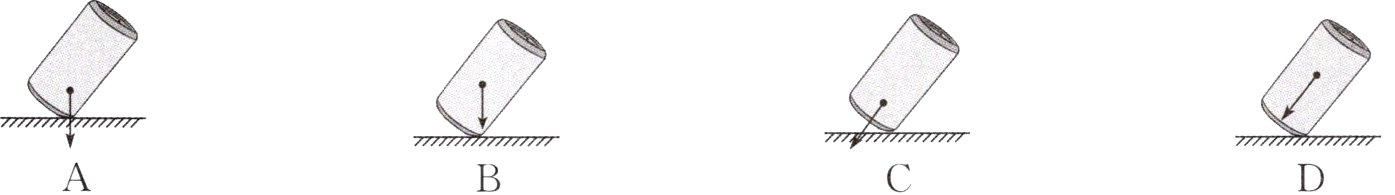 9.(2024·南京秦淮模拟)内有少量饮料的罐子可以斜放在水平桌面上保持平衡。下列四个图中,能正确表示饮料罐(含饮料)所受重力的示意图是 ( )