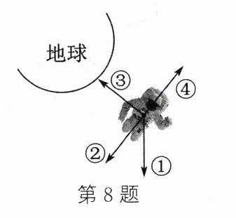 8. 如图,能正确表示出舱的航天员受到地球重力的示意图的是 ( )