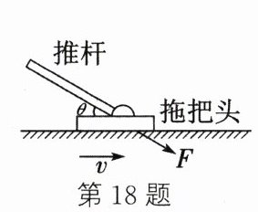 18. 如图,用力压着拖把拖地,是通过_______的方法来增大摩擦力,拖把头受到地面的摩擦力方向是_______(与F方向相反/水平向左/水平向右)。