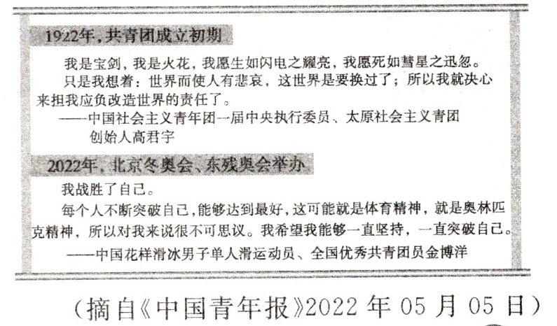 4. 活动开始,板报组成员选择了以下材料作为本期板报的内容。请你研读材料,思考内涵,将下面的语句补充完整。