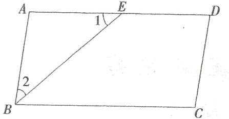 22. 如图,在四边形 $ A B C D $ 中,$ B E $ 平分 $ ∠ A B C $ 交线段 $ A D $ 于点 $ E $,$ ∠ 1 = ∠ 2 $.