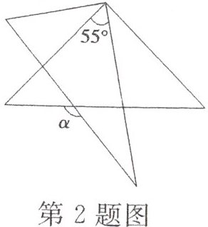 2. 如图,将分别含有$30^{\circ}$、$45^{\circ}$角的一副三角尺重叠,使直角顶点重合,若两直角重叠形成的角为$55^{\circ}$,则图中$∠α$的度数为( )