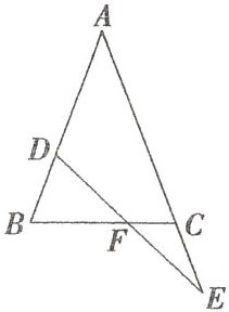 3.如图,在△ABC中,AB= AC,点D在AB上,若E在AC的延长线上,且BD= CE,DE交BC于F.求证:DF= EF.