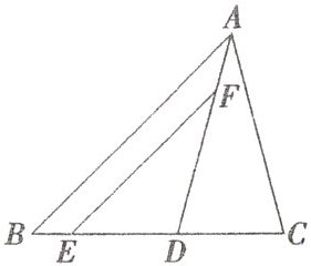 证明:过点$E$作$EF// AB$交$AC$于点$F$,