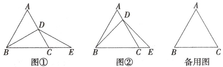 (2)若点D不是AC的中点,如图②所示,试判断AD与CE的数量关系,并证明你的结论;