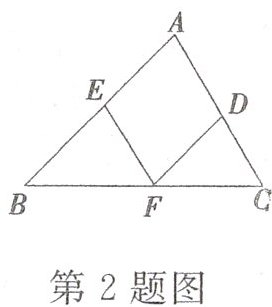 2. 如图,在△ABC中,点D,E,F分别是三条边上的点,EF//AC,DF//AB,∠B= 45°,∠C= 60°,则∠EFD= ( )