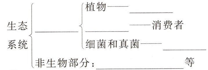 |分解者|______|将有机物分解成______,供植物重新利用|