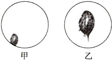 13. 显微镜的使用是初中生必备的基本技能之一。图中甲为显微镜结构图,乙为在显微镜下看到的物像图,下列叙述错误的是( )