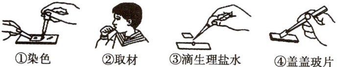 6. 如图表示制作人体口腔上皮细胞临时装片的几个步骤,正确的操作顺序是 ( )