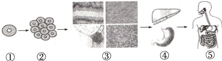12. 如图①~⑤为人体不同结构层次,下列说法正确的是 ( )