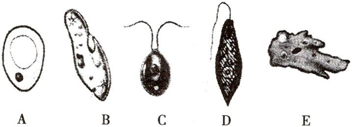 (1)由图可知,A是酵母菌,B是草履虫,C是衣藻,D是眼虫,E是变形虫。