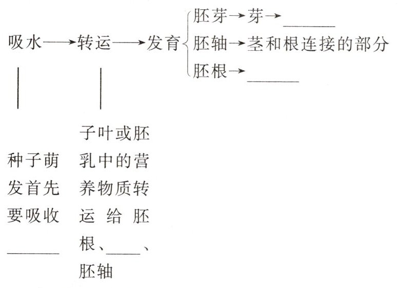 (4)受精完成后,花瓣、柱头、花柱、雄蕊等纷纷凋落,子房继续发育,逐渐膨大形成______,子房内的胚珠发育成______,受精卵发育成______,珠被发育成______,子房壁发育成______