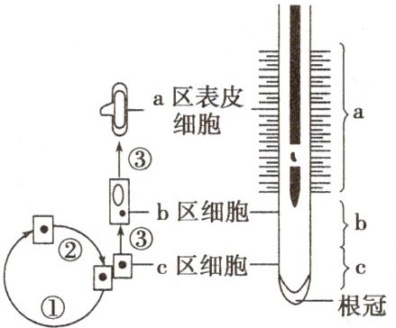 根尖的结构及部分生理过程示意图,①~③表