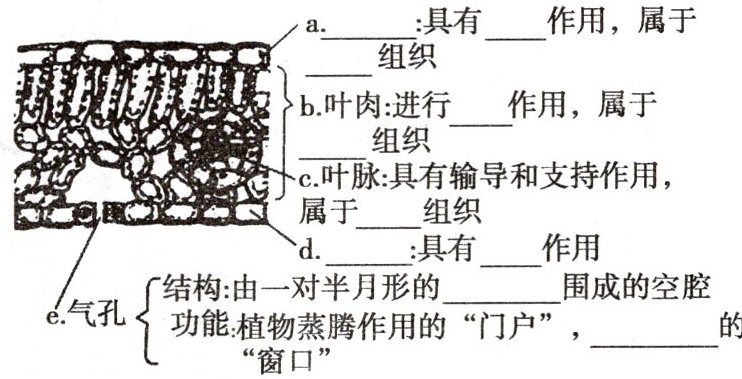 (1)上表皮 保护 保护 光合 营养 输导 下表皮 保护 保护细胞 气体交换