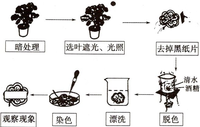 1. 黑暗处 2. 上、下两面 3. 隔水加热 4. 碘液