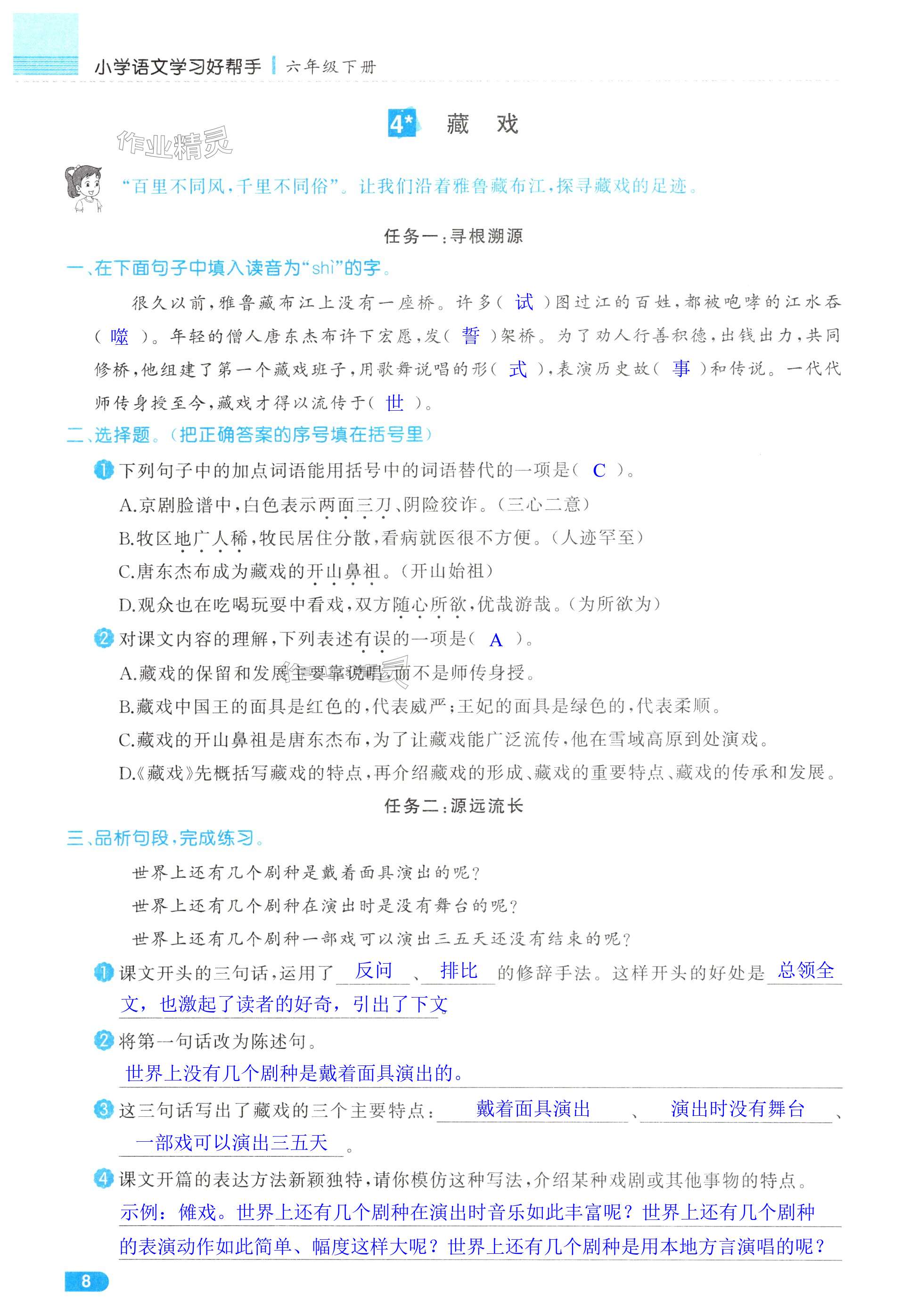 注:目前有些书本章节名称可能整理的还不是很完善,但都是按照顺序排列的,请同学们按照顺序仔细查找。练习册 2025年小学学习好帮手六年级语文下册人教版 答案主要是用来给同学们做完题方便对答案用的,请勿直接抄袭。