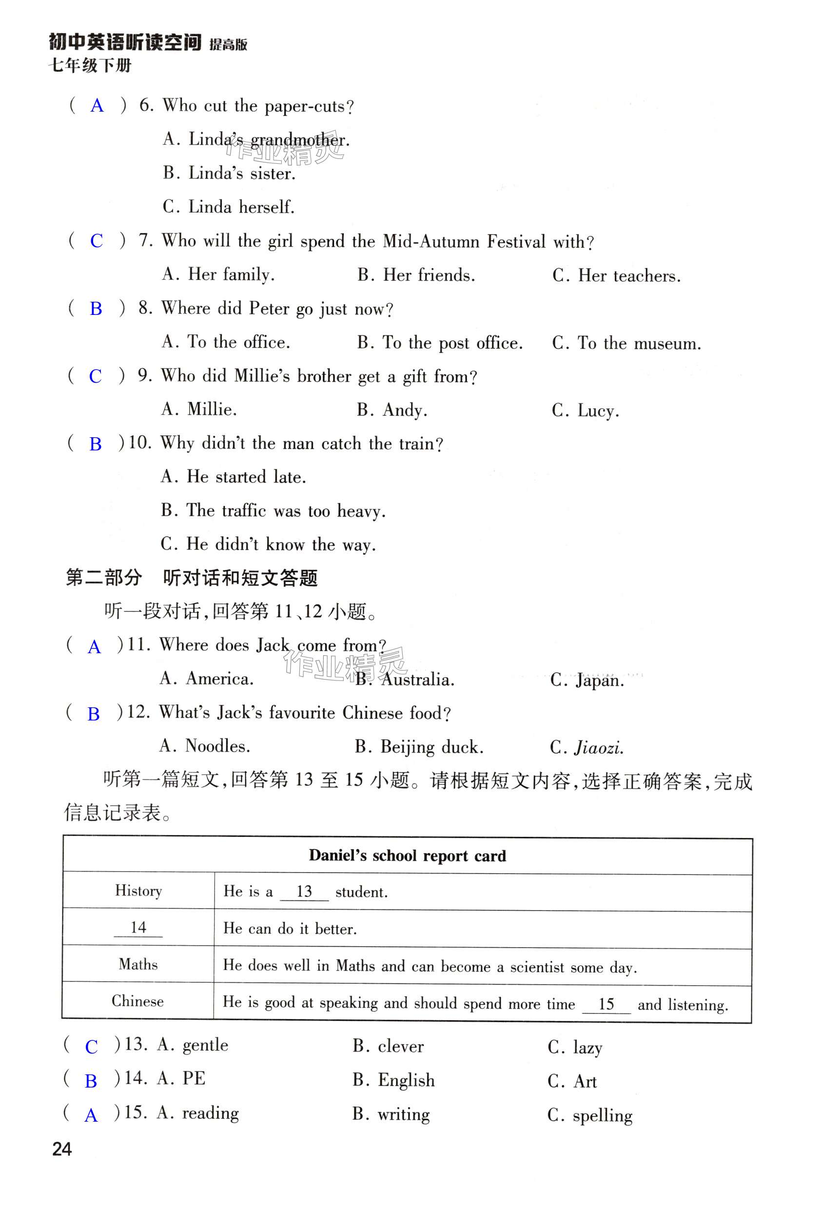 注:目前有些书本章节名称可能整理的还不是很完善,但都是按照顺序排列的,请同学们按照顺序仔细查找。练习册 2025年初中英语听读空间七年级下册译林版提高版 答案主要是用来给同学们做完题方便对答案用的,请勿直接抄袭。