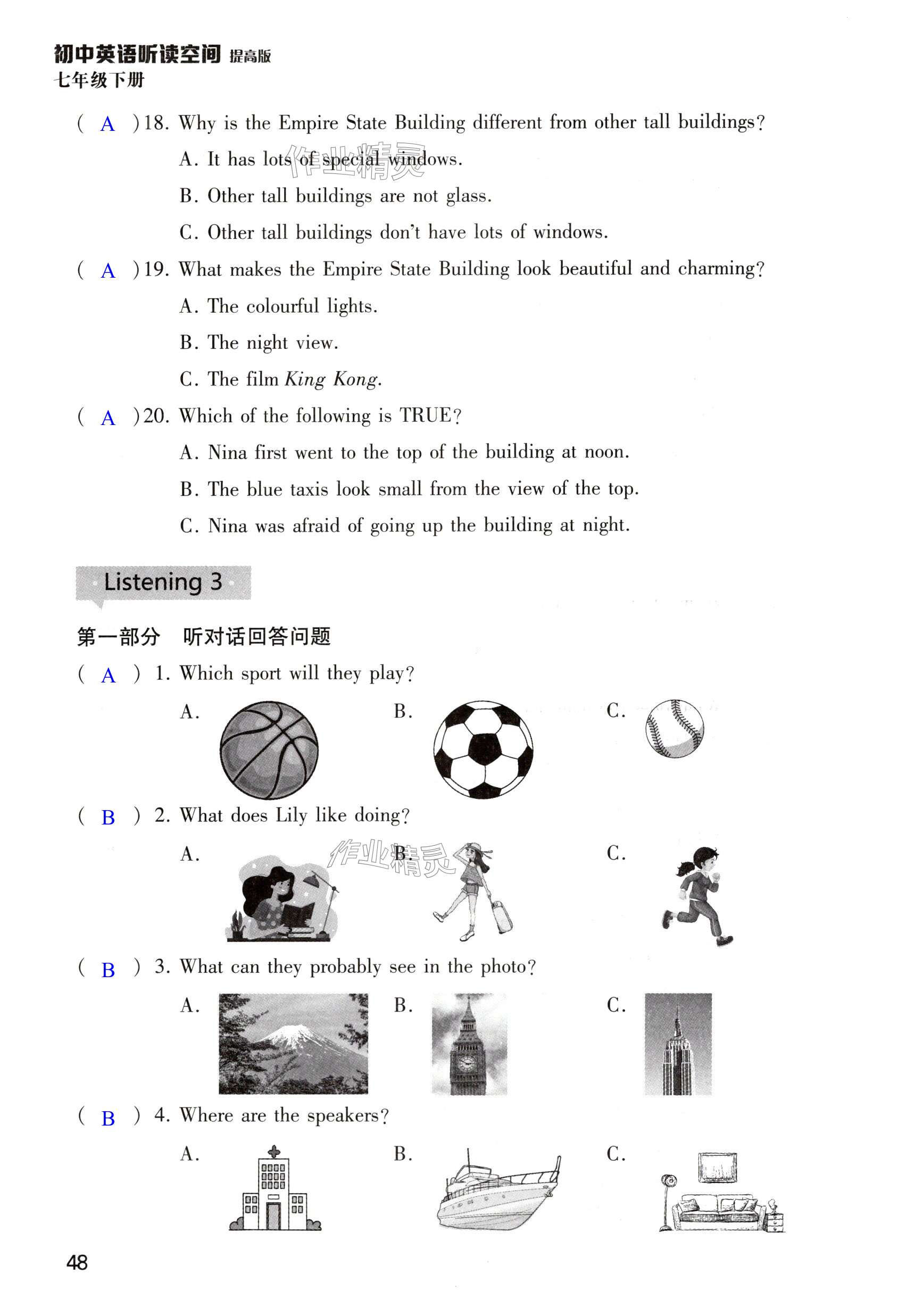 注:目前有些书本章节名称可能整理的还不是很完善,但都是按照顺序排列的,请同学们按照顺序仔细查找。练习册 2025年初中英语听读空间七年级下册译林版提高版 答案主要是用来给同学们做完题方便对答案用的,请勿直接抄袭。