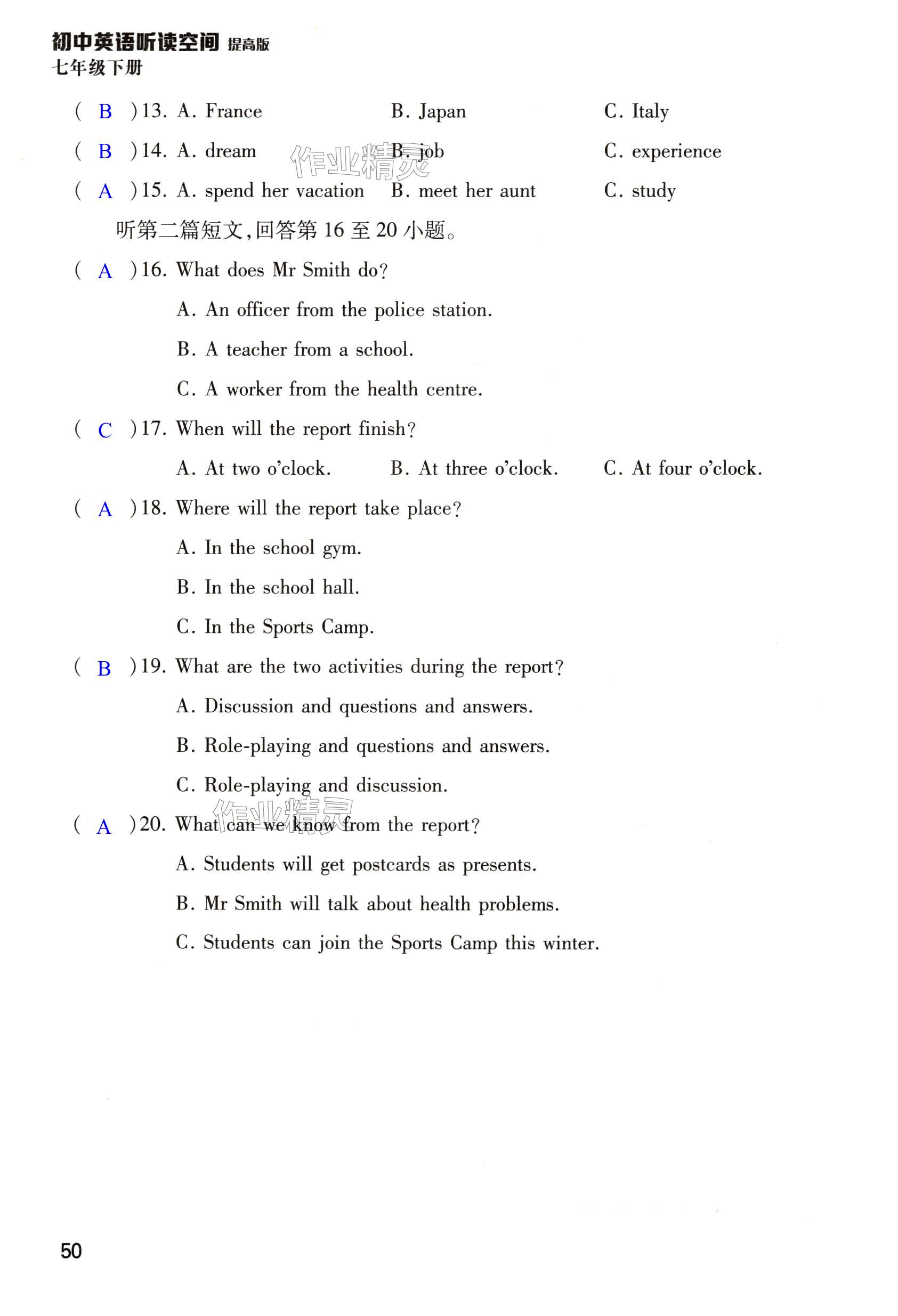 注:目前有些书本章节名称可能整理的还不是很完善,但都是按照顺序排列的,请同学们按照顺序仔细查找。练习册 2025年初中英语听读空间七年级下册译林版提高版 答案主要是用来给同学们做完题方便对答案用的,请勿直接抄袭。