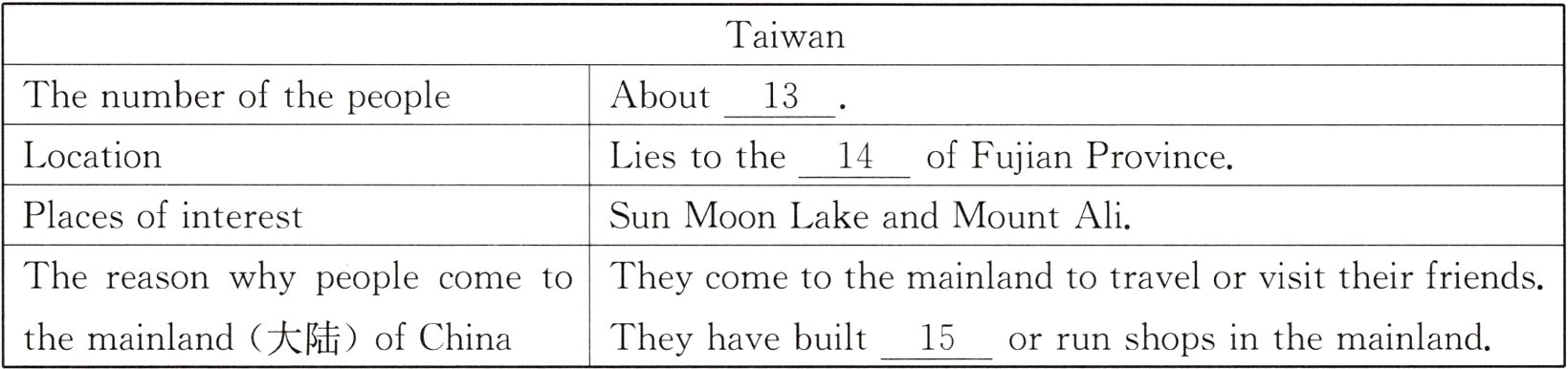 听第一篇短文,回答第13—15小题。请根据短文内容,选择正确答案,完成信息记录表。答题完毕,请等待“嘀”的信号,进入下一篇短文。