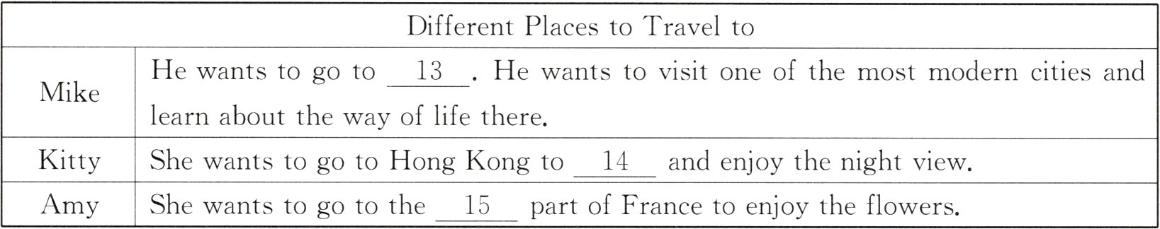 听第一篇短文,回答第13—15小题。请根据短文内容,选择正确答案,完成信息记录表。答题完毕,请等待“嘀”的信号,进入下一篇短文。