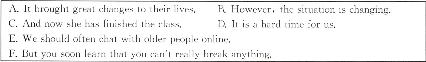 One student is 89 - year - old Betty. She joined one of the classes. 3.________ “I joined a class so I could learn how to send emails,” she says. “Using a computer was a little hard at first because you think you'll do something terrible if you press(按)the wrong key. 4.________ I think people of my age should take such classes.”