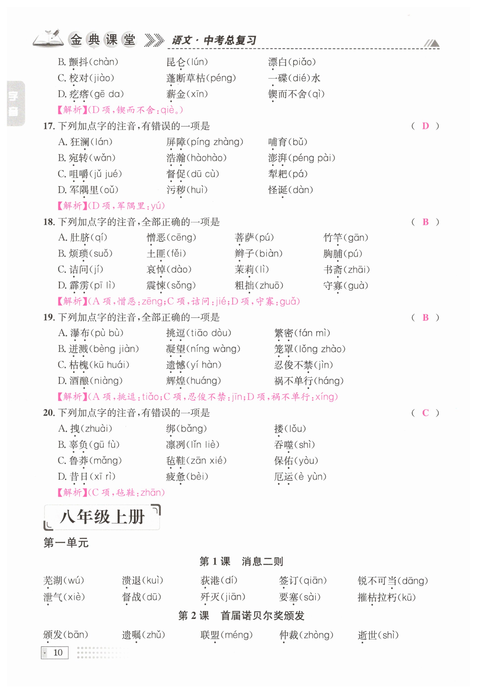 注:目前有些书本章节名称可能整理的还不是很完善,但都是按照顺序排列的,请同学们按照顺序仔细查找。练习册 2025年名校金典课堂语文中考成都专版 答案主要是用来给同学们做完题方便对答案用的,请勿直接抄袭。