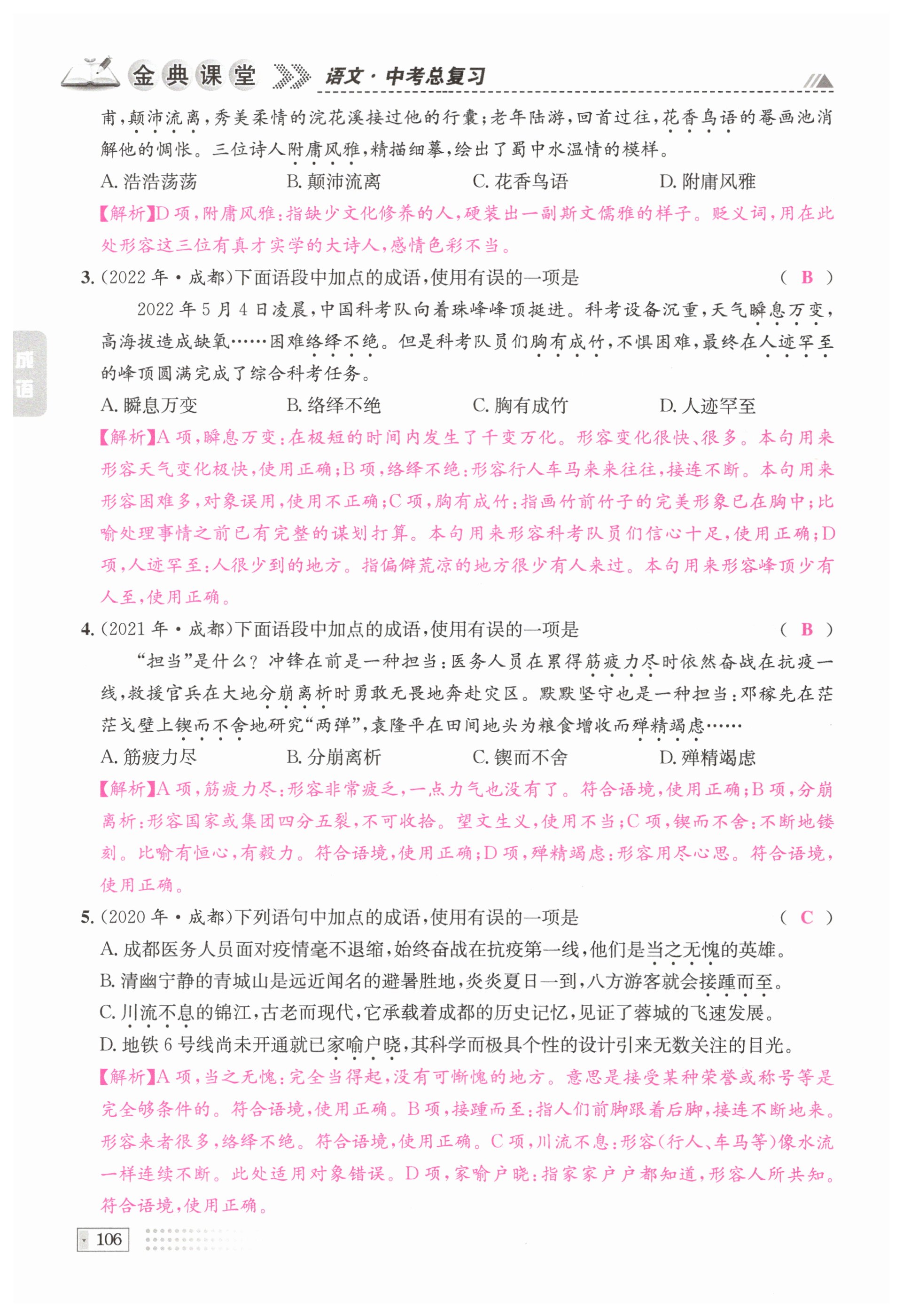 注:目前有些书本章节名称可能整理的还不是很完善,但都是按照顺序排列的,请同学们按照顺序仔细查找。练习册 2025年名校金典课堂语文中考成都专版 答案主要是用来给同学们做完题方便对答案用的,请勿直接抄袭。