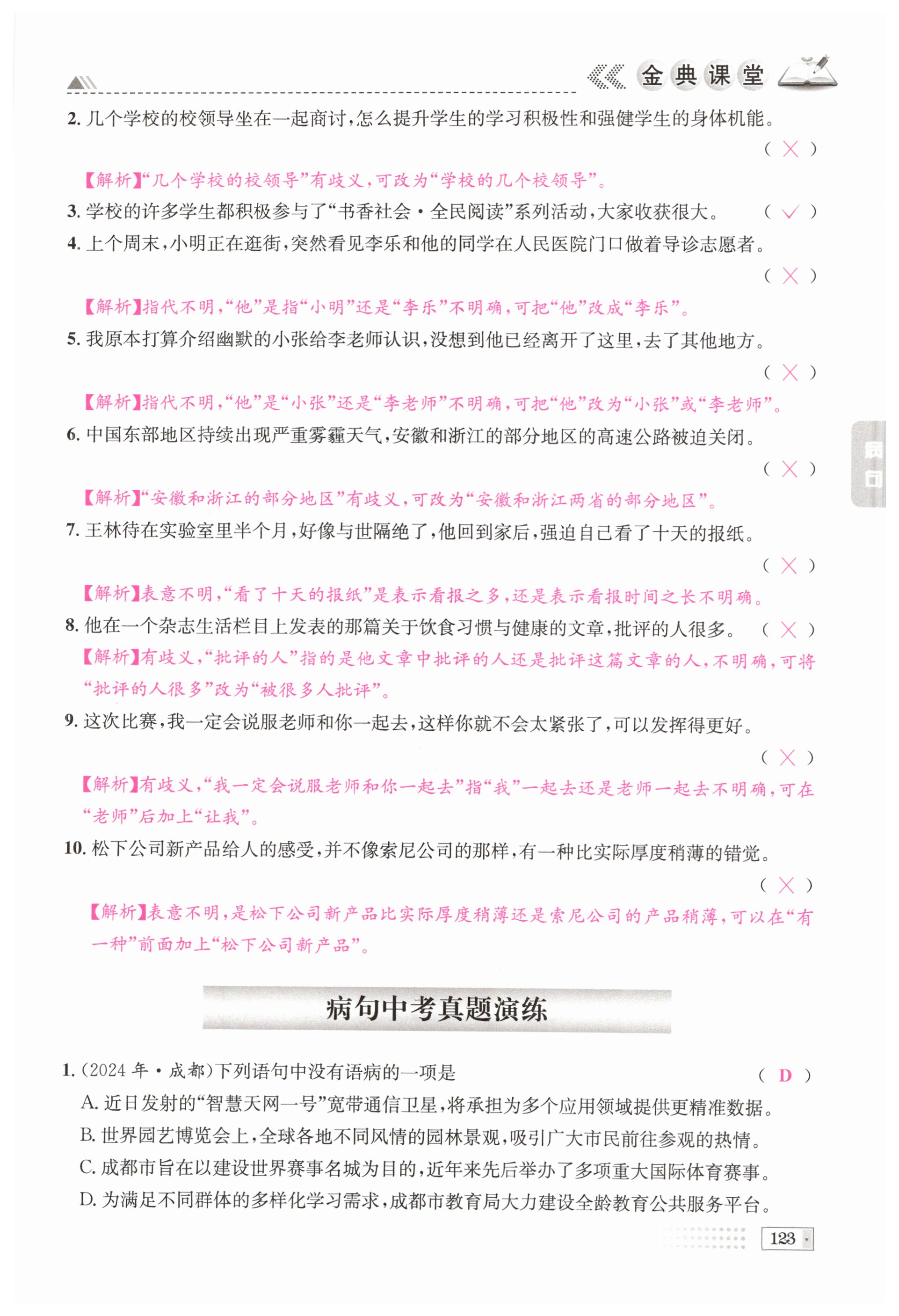 注:目前有些书本章节名称可能整理的还不是很完善,但都是按照顺序排列的,请同学们按照顺序仔细查找。练习册 2025年名校金典课堂语文中考成都专版 答案主要是用来给同学们做完题方便对答案用的,请勿直接抄袭。